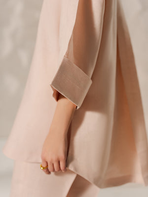Grace in every detail — Aeris from THE LINEN collection brings softness and structure together in perfect balance. Crafted from breathable, Pure Linen, this co-ord set in a delicate blush nude tone is effortlessly elegant, with just the right hint of modern tailoring.