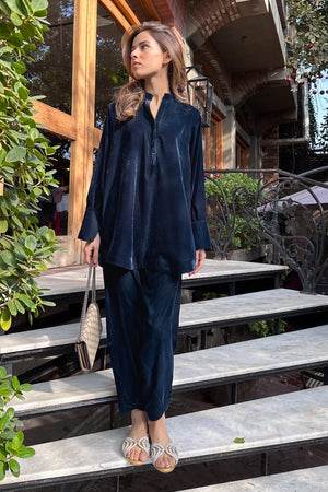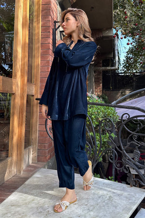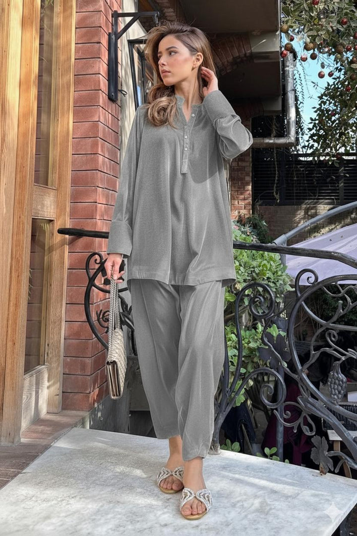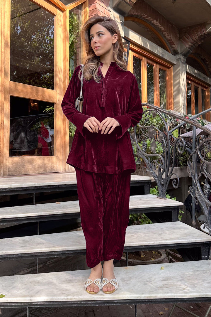 A Chic casual velvet set to ace the Minimalist Fashionista Look.
