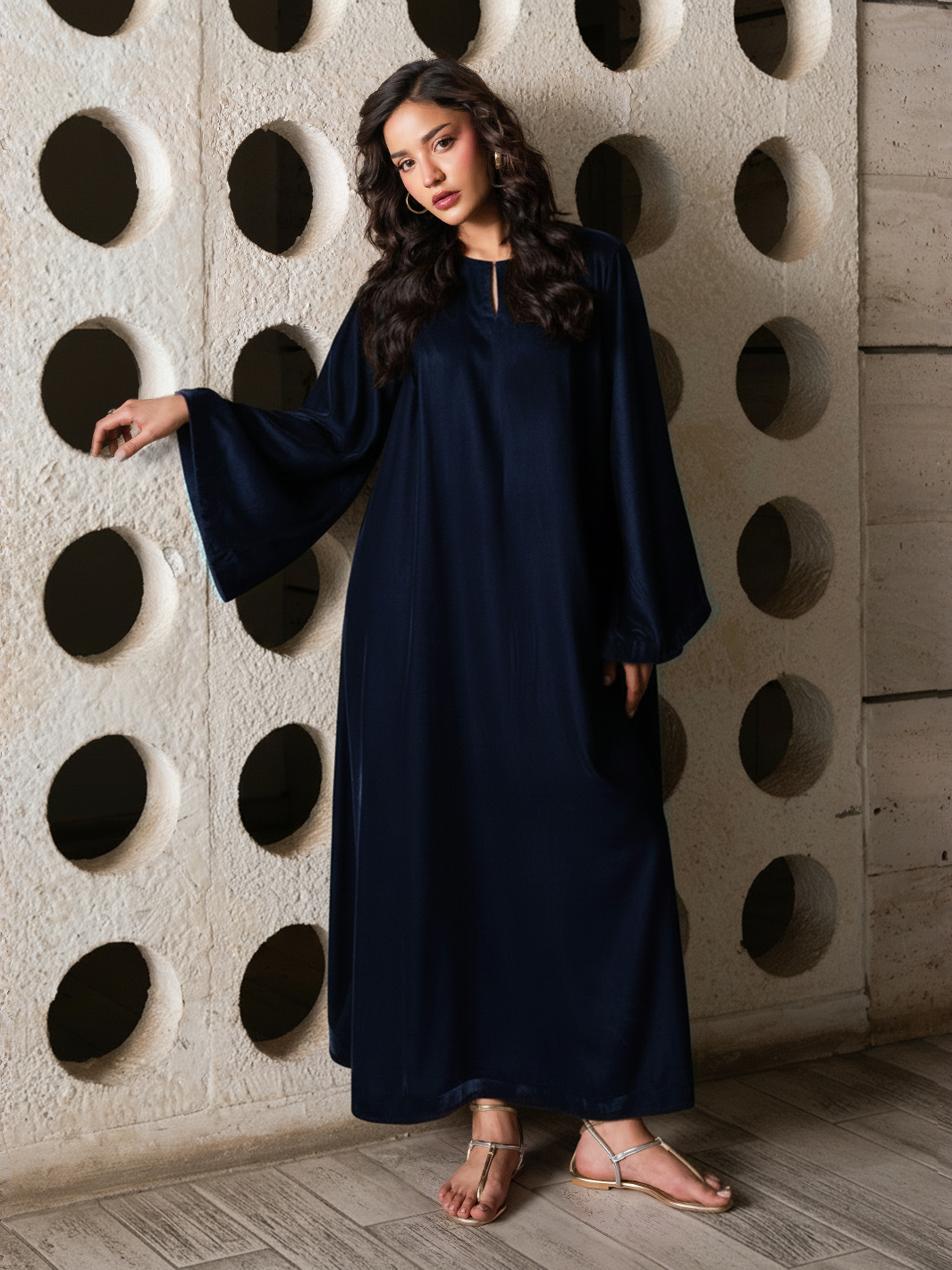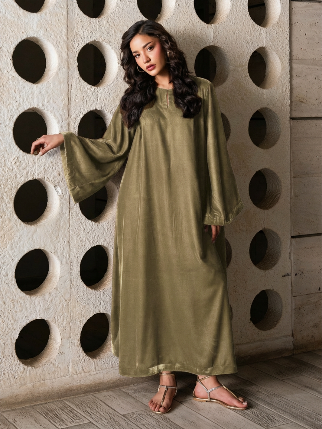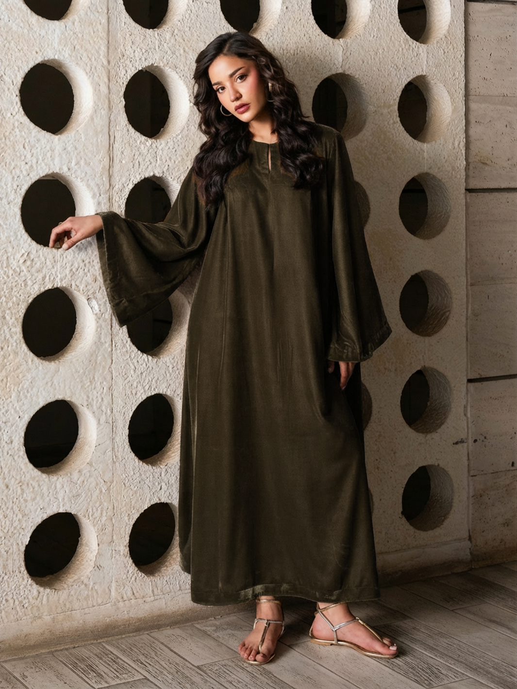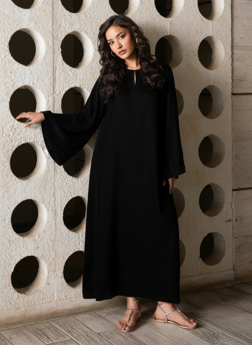 Elevate your statement style with the Lissa Velvet Kaftan, crafted in luxurious Micro Velvet 9000 for a rich, elegant fall. The top features a kaftan silhouette with flared sleeves, creating a graceful and modern drape. Paired with relaxed trousers, this two-piece set blends comfort with high-end sophistication — perfect for evening wear, gatherings, or refined daywear.