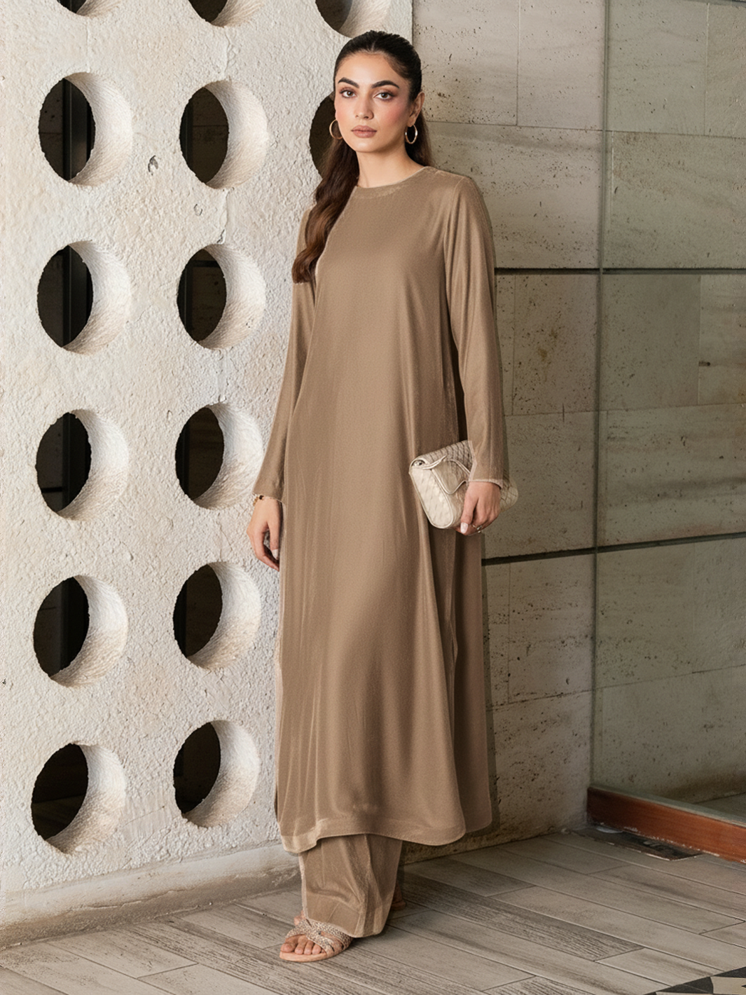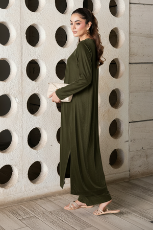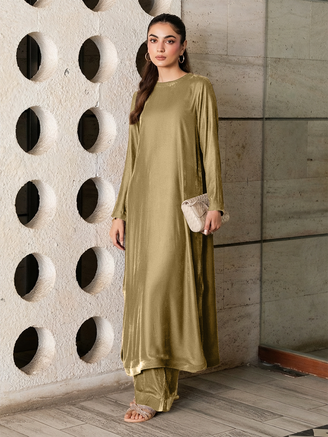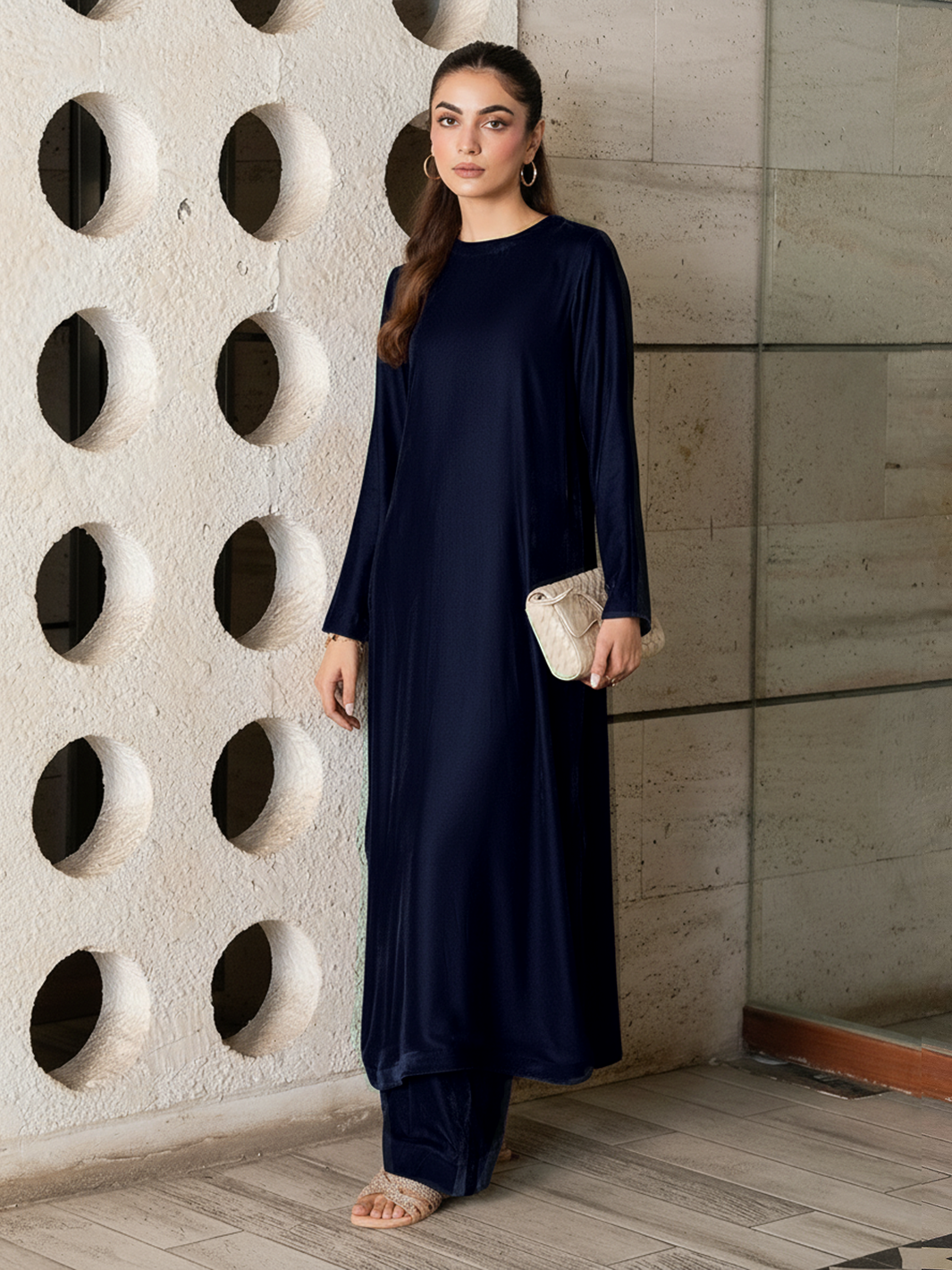 Experience refined elegance with the Omera Velvet Set, crafted from luxurious Micro Velvet 9000 for a smooth and graceful drape. The top features a round-cut kaftan silhouette with sleek sleeves, offering a modern yet modest look. Paired with straight loose pants, this two-piece set delivers effortless sophistication for daytime outings, casual gatherings, and evening wear.