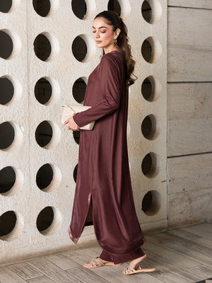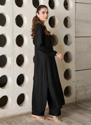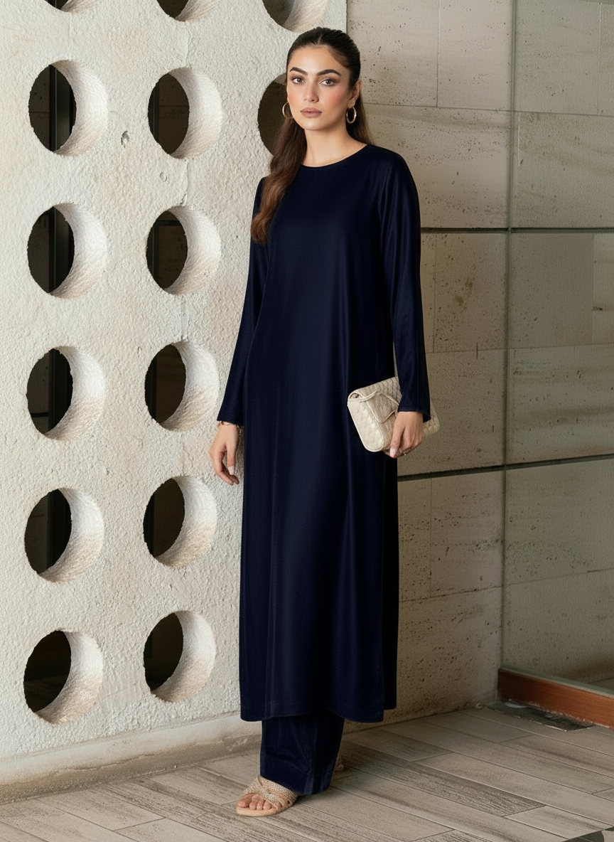 Experience refined elegance with the Omera Velvet Set, crafted from luxurious Micro Velvet 9000 for a smooth and graceful drape. The top features a round-cut kaftan silhouette with sleek sleeves, offering a modern yet modest look. Paired with straight loose pants, this two-piece set delivers effortless sophistication for daytime outings, casual gatherings, and evening wear.