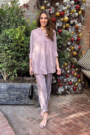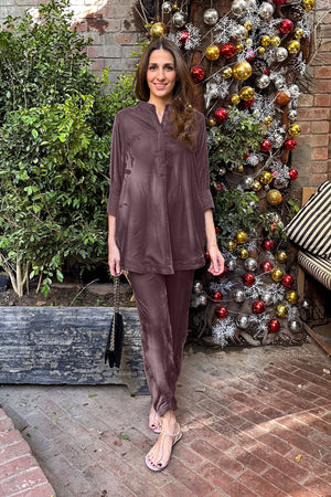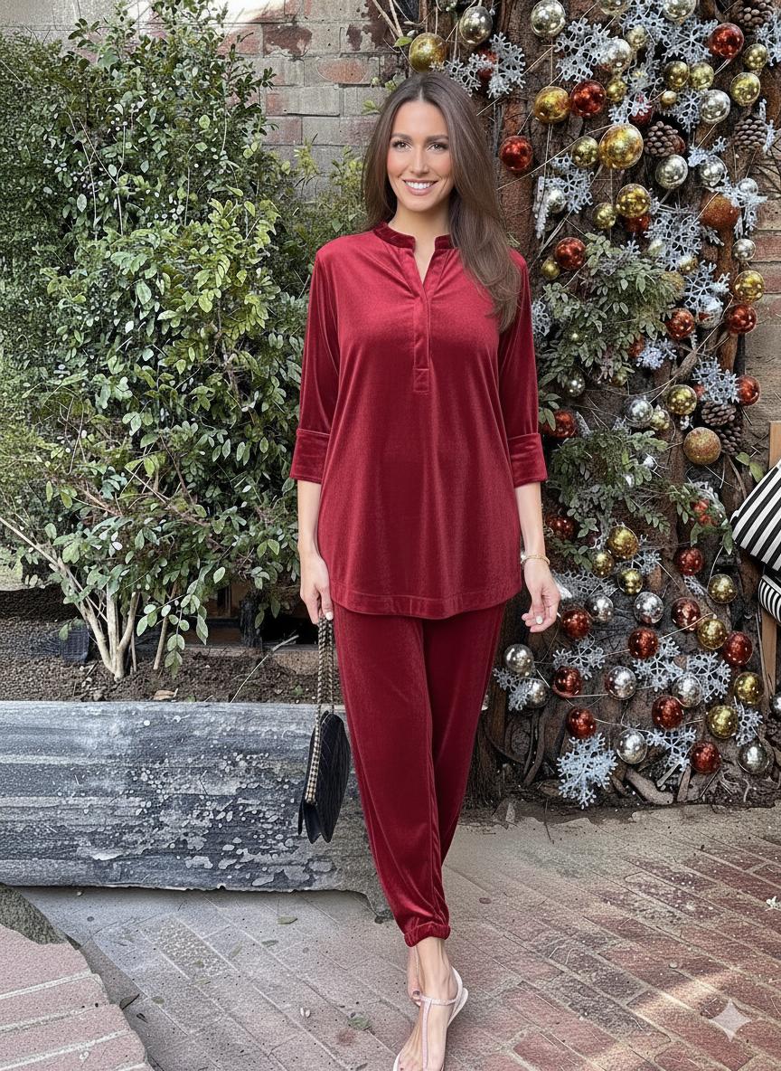 A Chic casual velvet set to ace the Minimalist Fashionista Look.