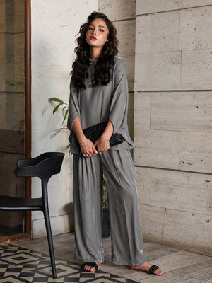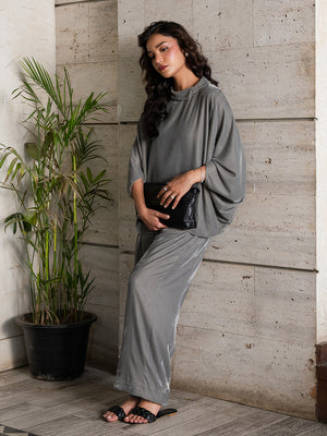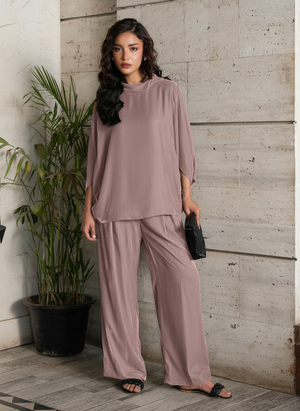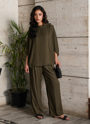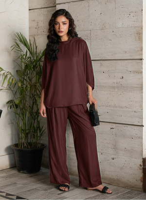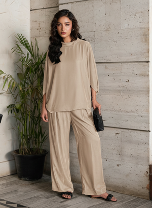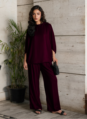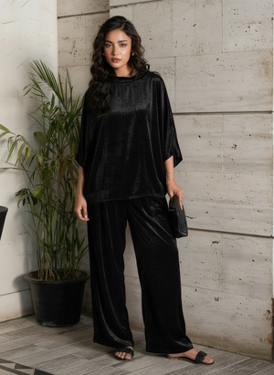 Step into modern elegance with the Vion Velvet Set, crafted in luxurious Micro Velvet 9000 for a smooth, rich finish. The top features a baggy shirt silhouette with a classic collar, giving it a chic and contemporary edge. Paired with loose flared pants, this two-piece set offers comfort, movement, and effortless sophistication — perfect for casual outings, gatherings, or elevated everyday wear.