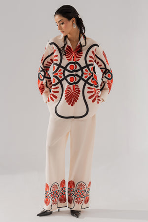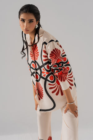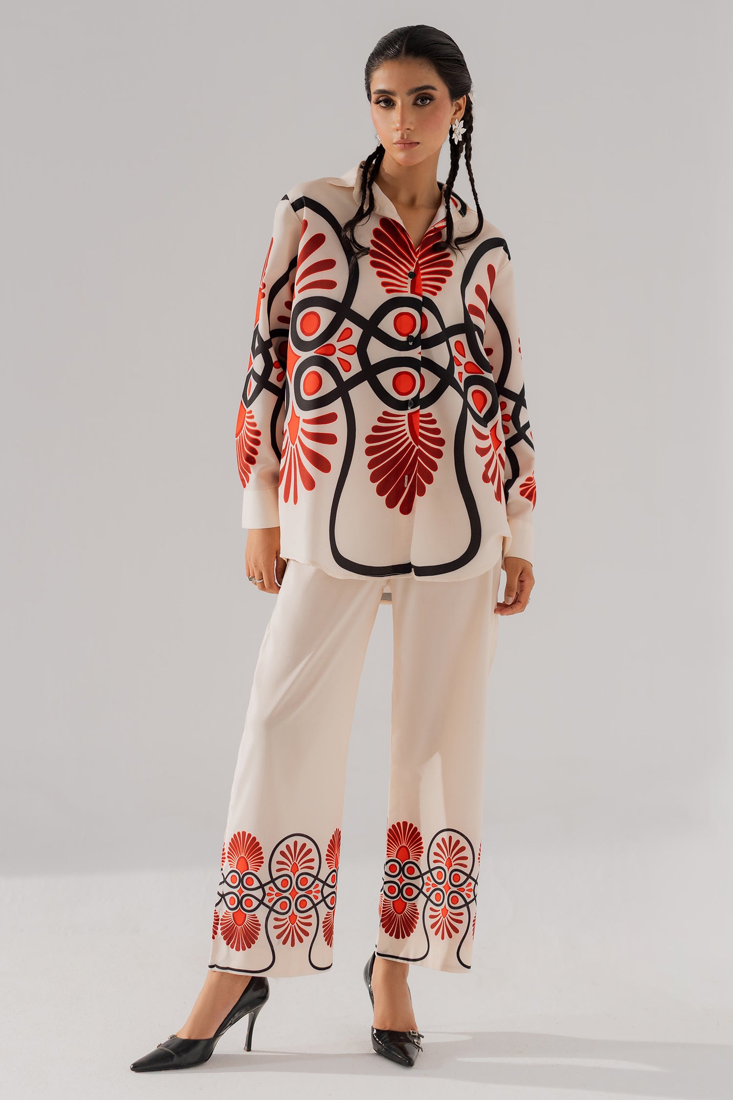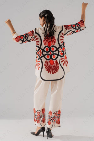 Step into bold sophistication with Flint, a striking co-ords set that masterfully blends contemporary edge with traditional elegance. This 2-piece ensemble from Kiara.pk features a perfectly coordinated top and bottom crafted from premium soft, textured blended lawn silk, offering exceptional comfort with a structured yet fluid silhouette.