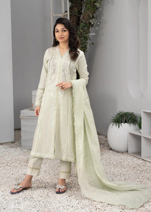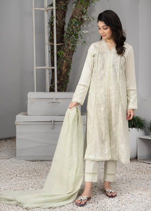 Description: A beautiful three piece pret article with shirt. trouser and dupatta all season made in Tarkashi (Leno Kara). Embellished with beautiful laces
