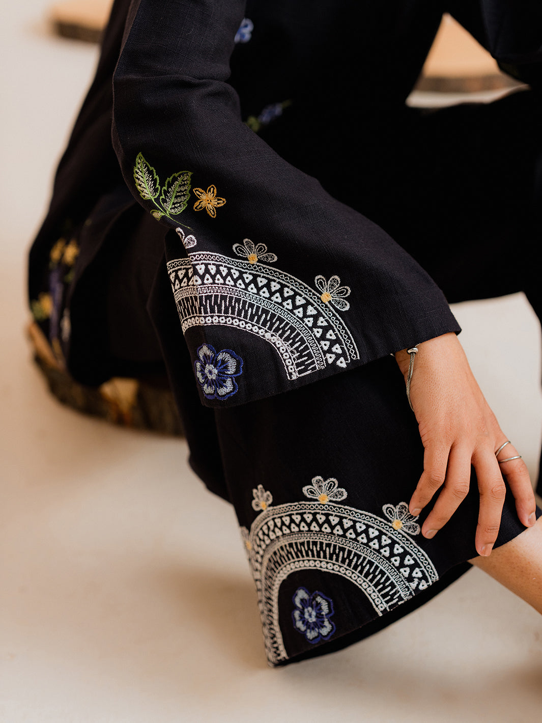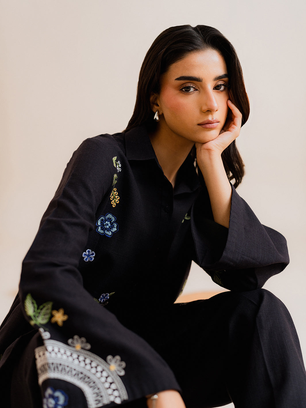 Kavri presents a sophisticated 2-piece embroidered khaddar co-ord set, meticulously designed for the discerning wearer. Crafted from premium winter-weight khaddar, this collection marries seasonal practicality with refined elegance. Each piece features intricate embroidery work—the straight-cut shirt displays ornamental detailing across the front and sleeves, while coordinating straight trousers complete the curated ensemble. This versatile set transitions seamlessly from professional settings to social occasions and everyday wear, offering a polished aesthetic without compromise. The complete package arrives ready to wear, delivering effortless sophistication and a cohesive, intentional look.