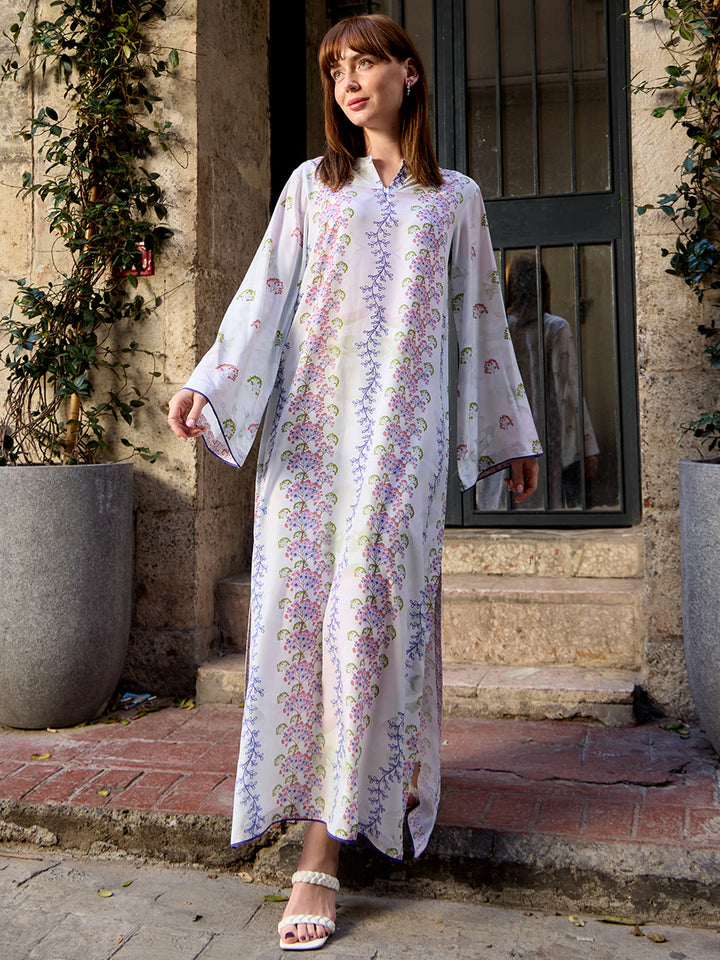 Discover understated elegance with Faye, a beautifully crafted eastern women’s kaftan made from premium Crepe Polyester. Its soft pastel tones and delicate print detailing create a serene, graceful look. Designed for comfort and sophistication, Faye is perfect for fall days, casual gatherings, or relaxed evenings when you want timeless style with effortless charm.