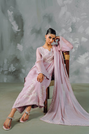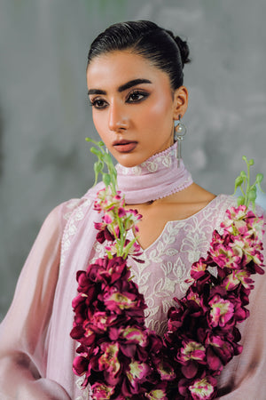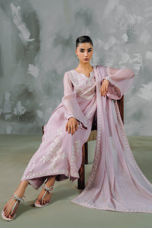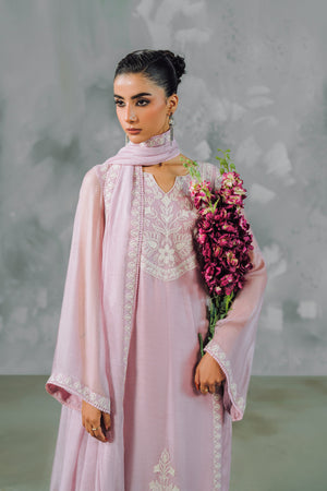 Discover the intersection of heritage craft and modern silhouette with The Khaddi Tulle. This standout four-piece set is defined by its use of Tusser Khaddi Net, a fabric prized for its ethereal transparency and rich, artisanal feel. The entire piece is elevated by specialized Aari work—an intricate chain-stitch embroidery that creates a tactile, embossed floral landscape across the shirt and dupatta.