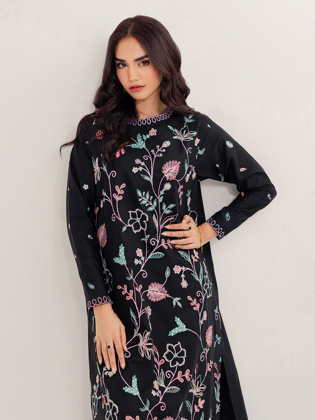Exude effortless grace in 'Lumera,' a standout piece from our Summer Pret '26 collection. Designed for the modern Pakistani woman, this ensemble combines a timeless black canvas with intricate, vibrant artistry, making it a perfect choice for both daytime elegance and evening soirees.