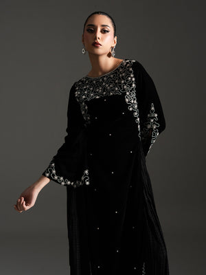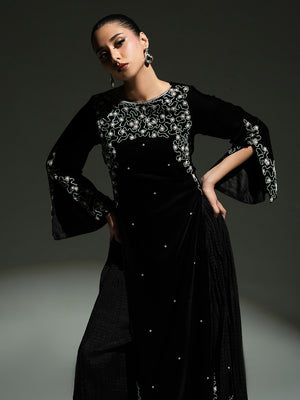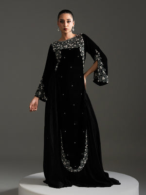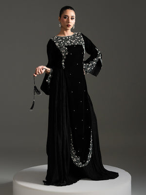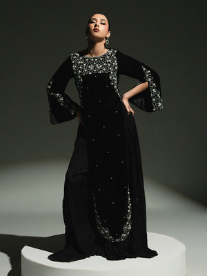 Mahveen – Black Regal Velvet Gown