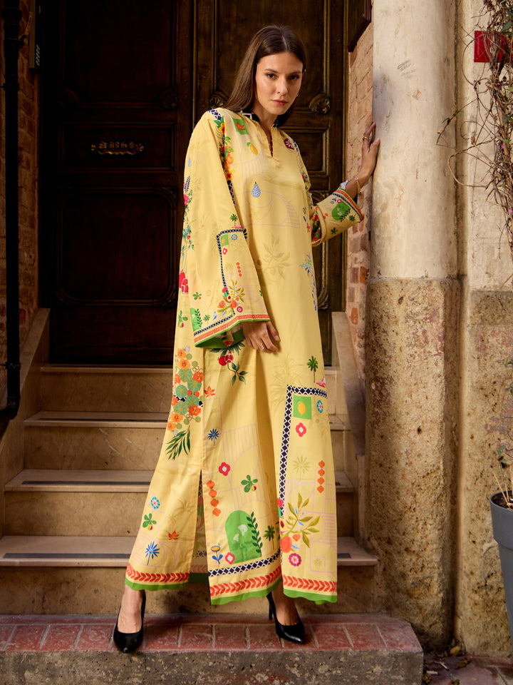 Embrace timeless elegance with Noen, a stunning eastern women’s kaftan crafted in luxurious Crepe Polyester. Featuring warm yellow tones with intricate artistic motifs, this design brings a touch of vintage charm with a modern twist. The flowing silhouette offers effortless comfort, making it perfect for fall gatherings, festive occasions, or relaxed evenings with poise and sophistication.