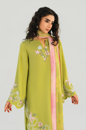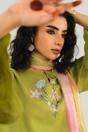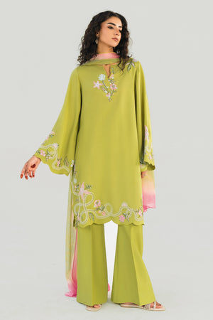 OLIVE LIME - 3pcs Khaddi Silk Ensemble