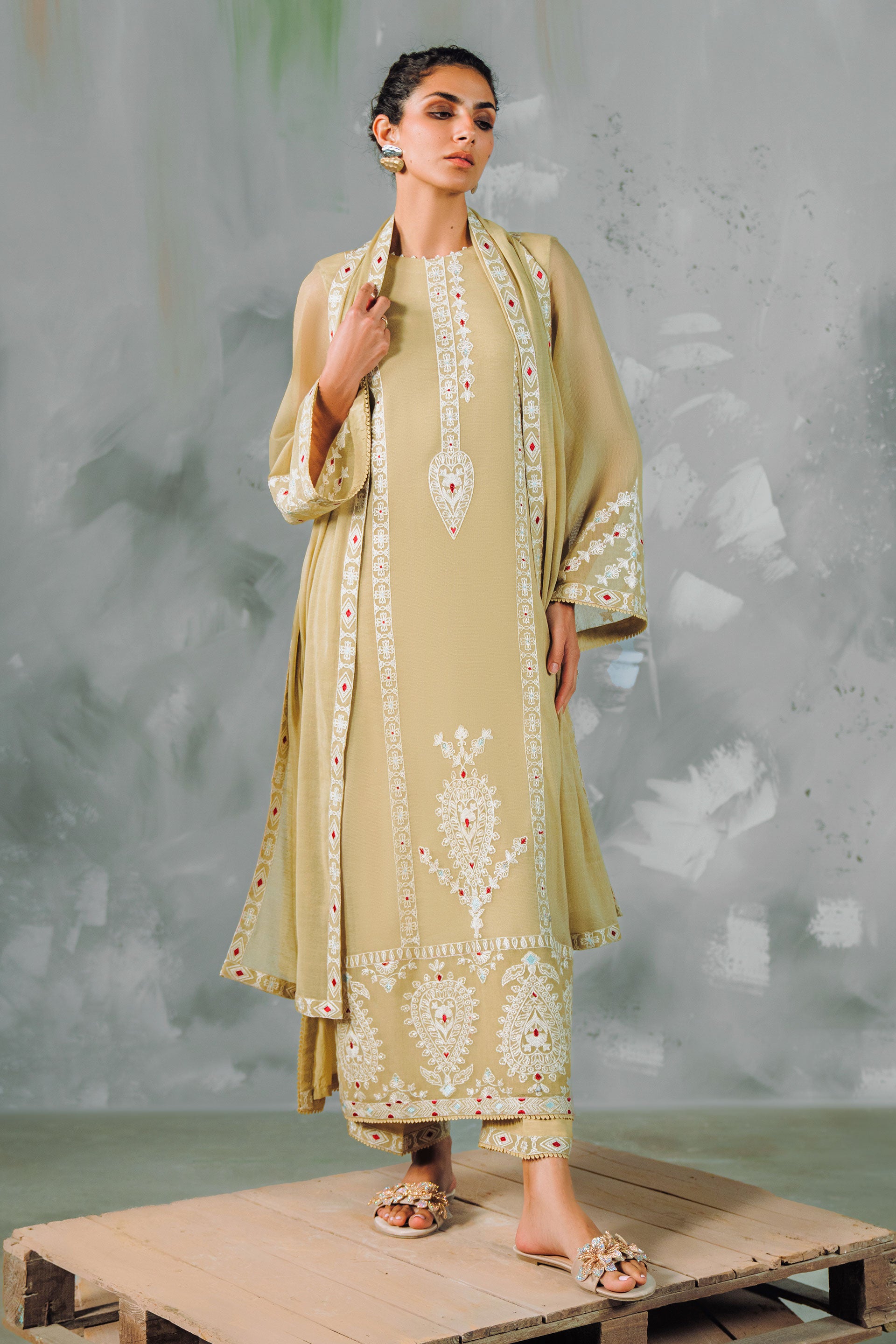Aari Work Suit, Tusser Khaddi Net, Eid Collection 2026, Luxury Silk Pret Pakistan, Raw Silk Trousers, Cotton Silk Inner, Designer Eid Outfits.