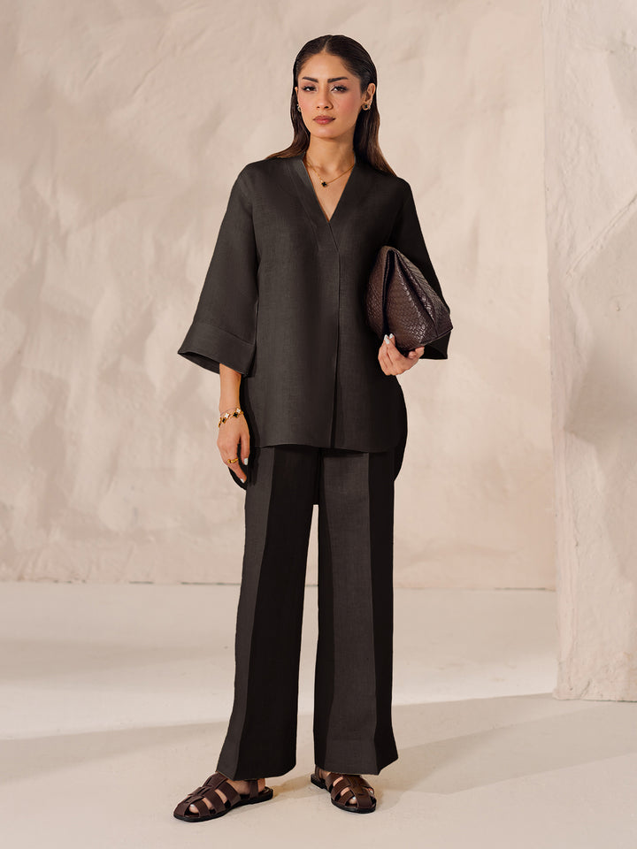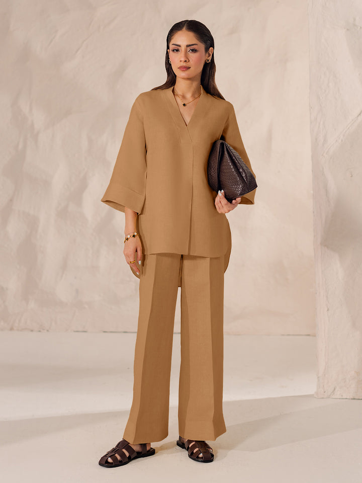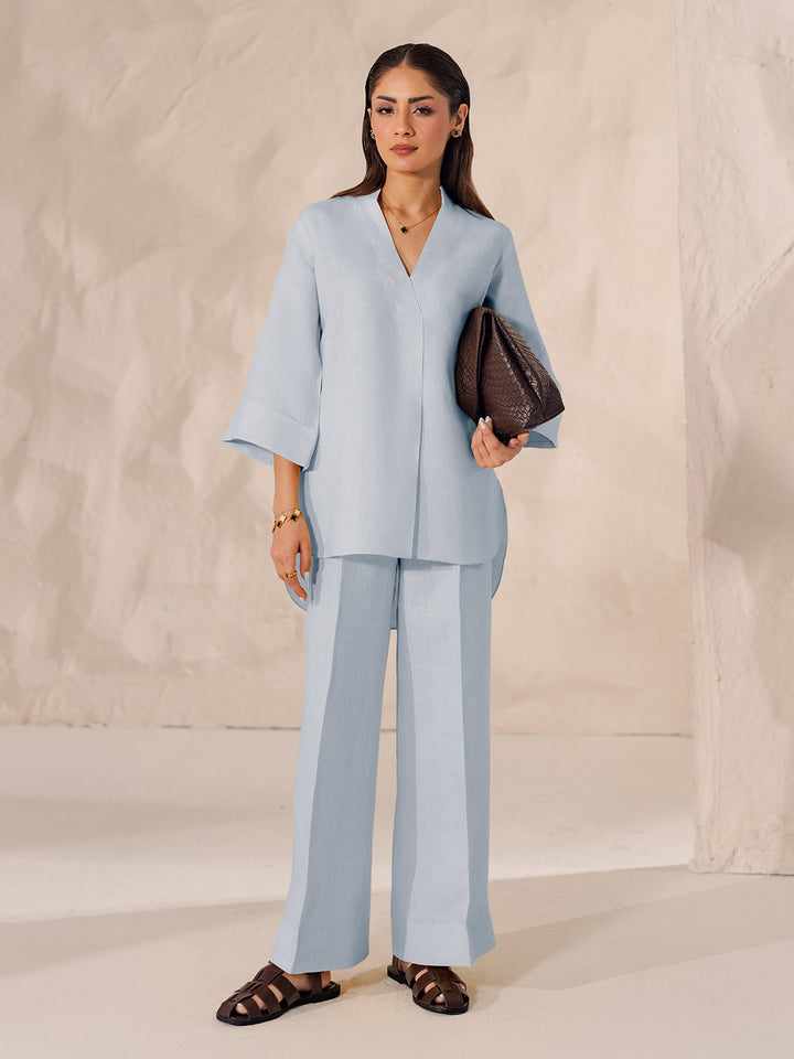 Featuring a button-down shirt with cuffed sleeves and matching straight-leg trousers, Solace is the kind of set you'll wear on repeat — minimal, airy, and quietly elevated.