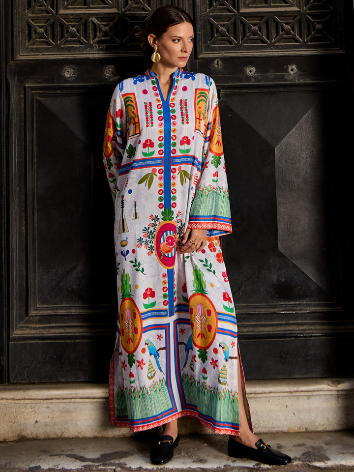 Express your artistic side with Vitra, a striking eastern women’s kaftan crafted in soft Crepe Polyester. The bold blend of colors and statement prints gives this piece a modern, creative edge. Designed for comfort and confidence, its relaxed silhouette flows beautifully, making it the ideal choice for fall gatherings, evening wear, or stylish everyday outings.