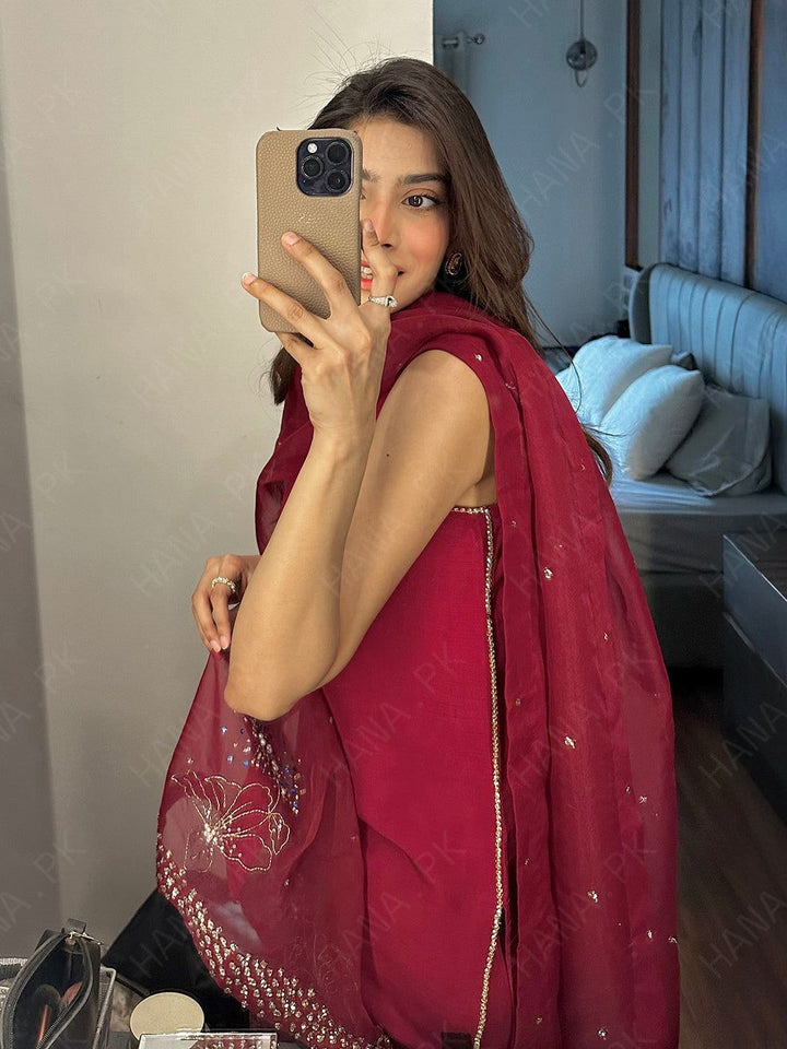 With Dupatta: Comes with a coordinated, embellished Dupatta to complete the luxurious look.
