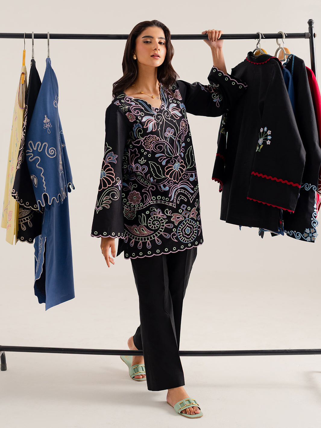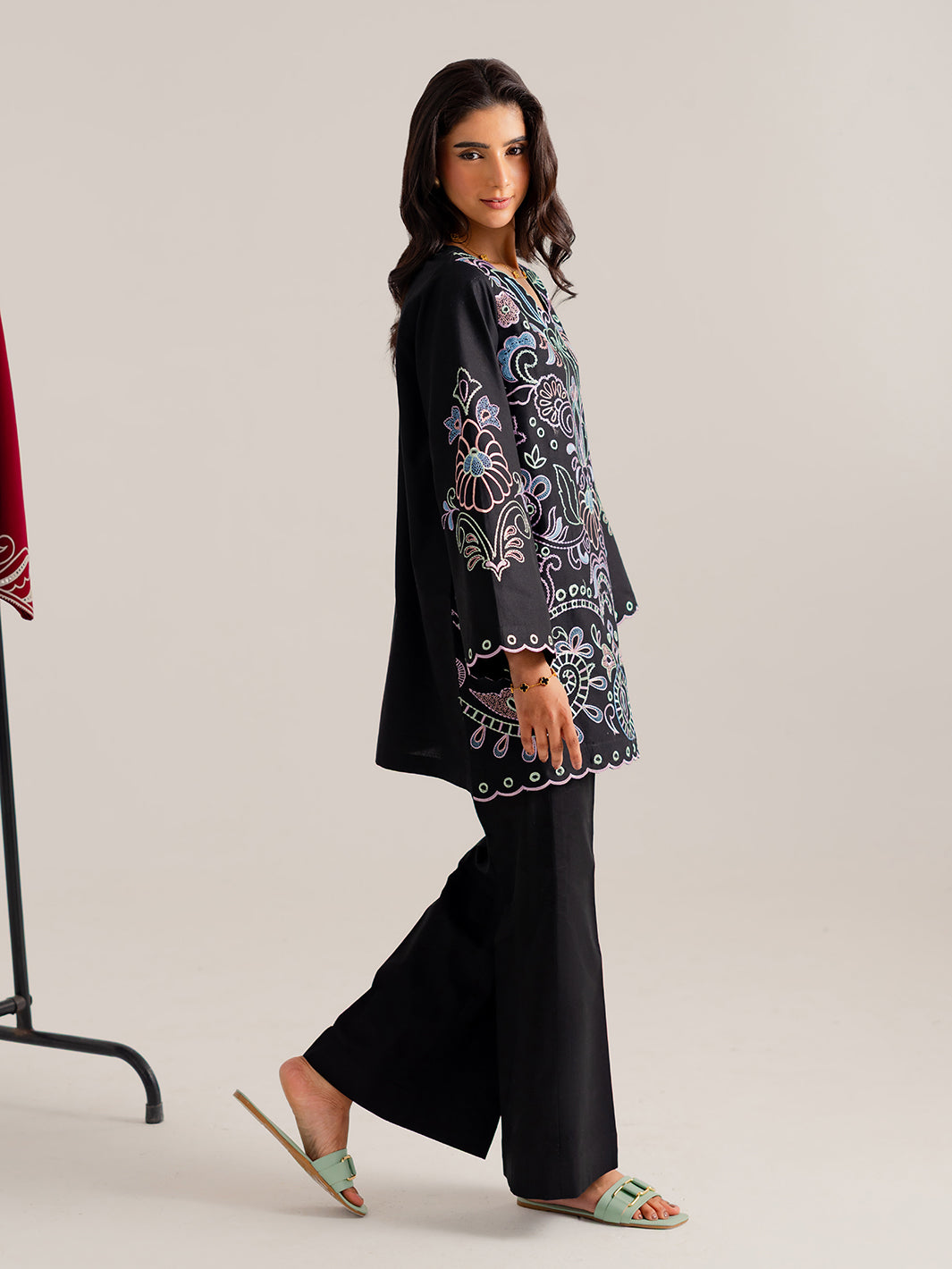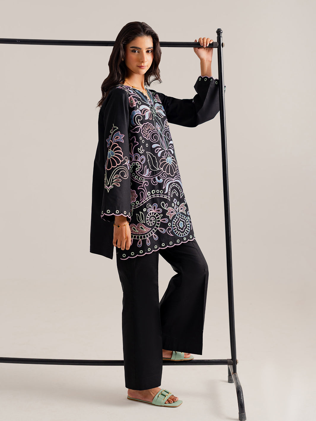 A timeless addition to your Summer Pret 2026 wardrobe. This Jet Black set features exquisite Schiffli and Chickankari-style embroidery throughout. Designed for the modern Pakistani woman, it blends traditional craftsmanship with a sleek, contemporary silhouette.